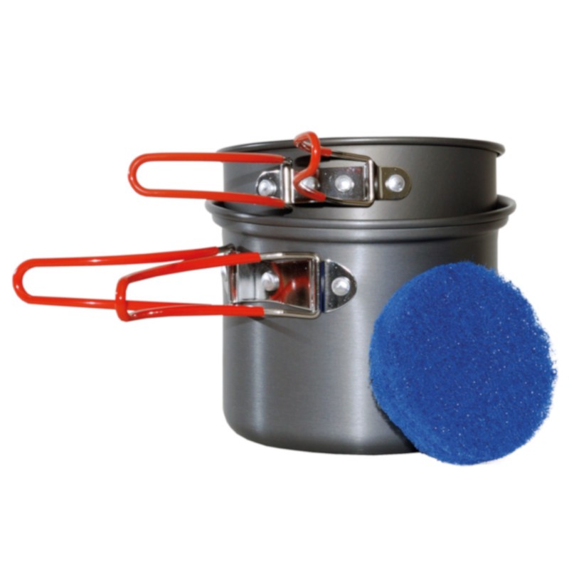 Das Set Travel Pro ist idealer Begleiter des Campings oder während der verschiedene Outdoor-Aktivitäten. Das Set besteht aus 2 Töpfe, Schwamm und Schutzhülle. Die Töpfe (0,75L und 0,3L) können Sie zusammensetzen, also sie bilden die kompakte Ganzheit. Die wurde auch leichtem und widerstandsfähigem Material hergestellt-die ganze Konstruktion wiegt nur 215 g und ist richtig platzsparend. Die Oberfläche heizt sich schnell , deswegen können Sie einfach eine heiße Mahlzeit oder ein heißes Getränk vorbereiten.